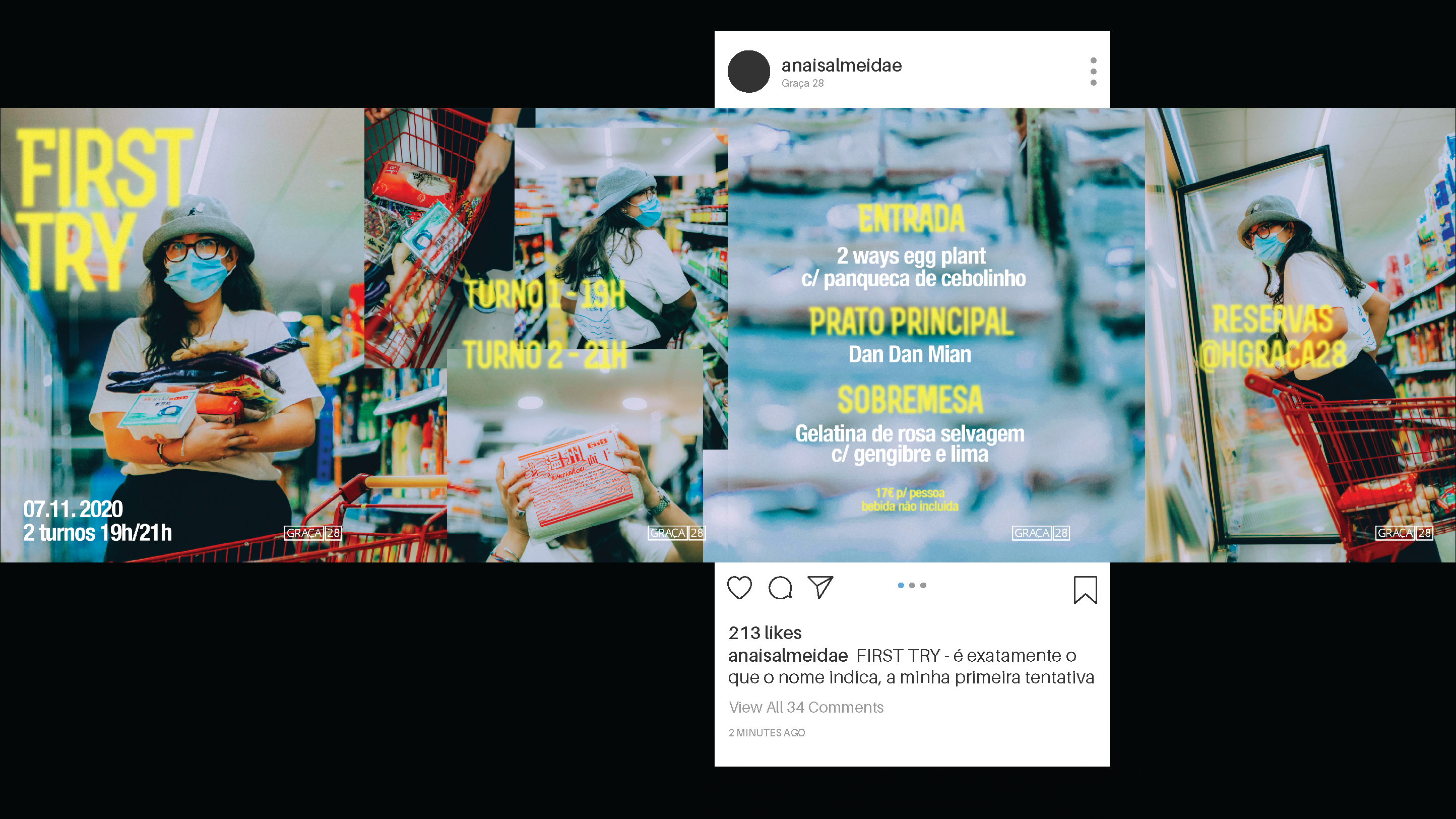 As the name says, it was my first culinary showcase. For a service of 40-ish people, I prepared a chinese menu inspired by my time in Beijing. Besides thinking about all the food, I also wanted a communication that represented me and the vibrat colours I experienced and found in China. Alongside with Bárbara Lizardo & Cristiana Morais we created the identity and look and feel for the event.